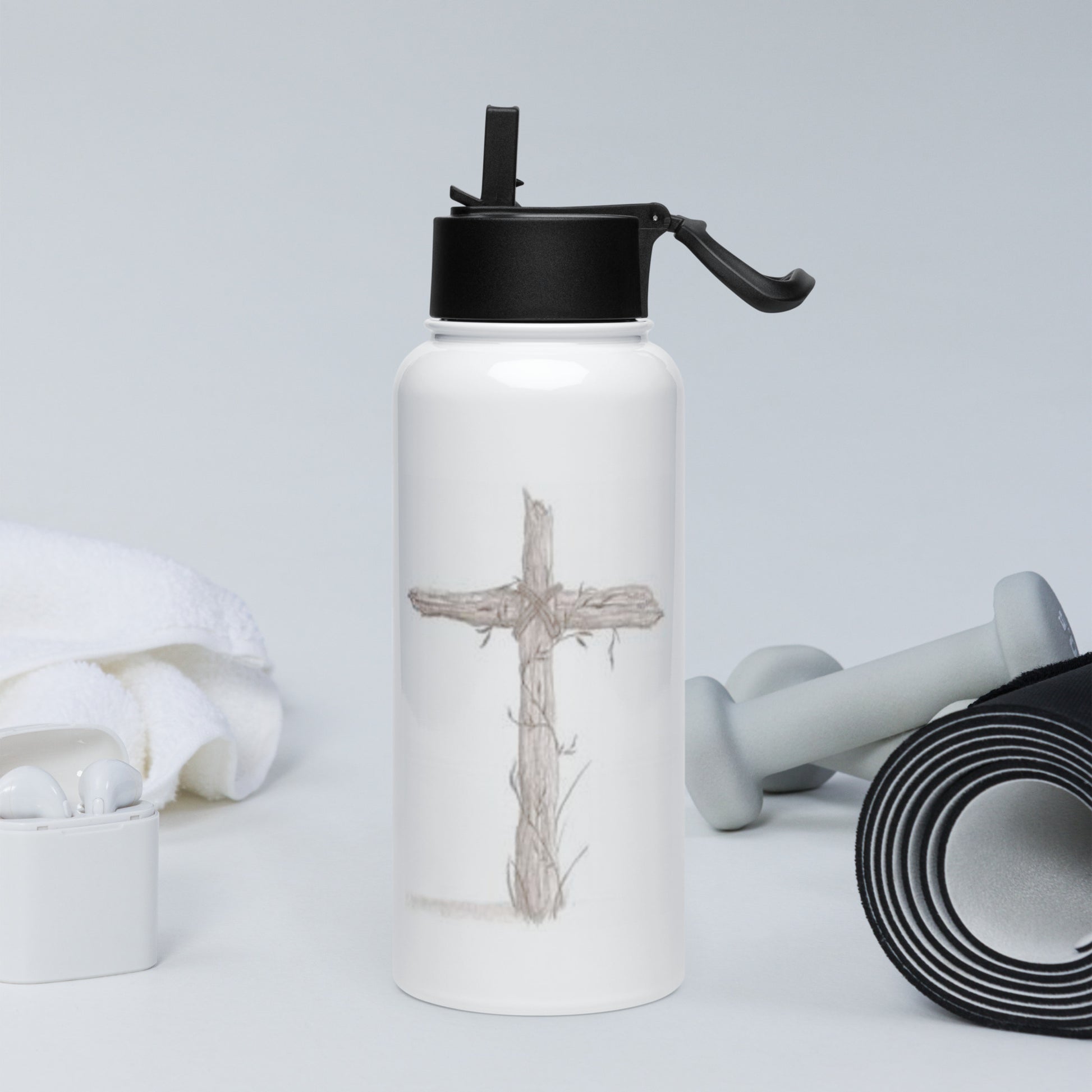JESUS LIVES Stainless steel water bottle with a straw lid with scripture REVELATIONS 1:18